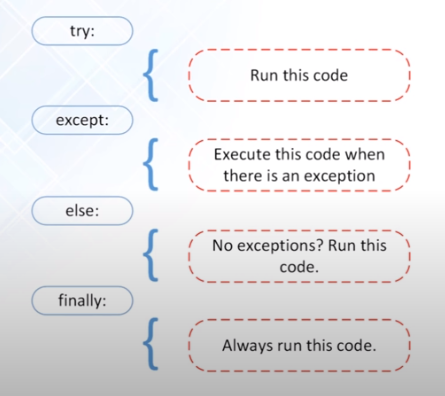 - Else : run if there is no exceptions in try block