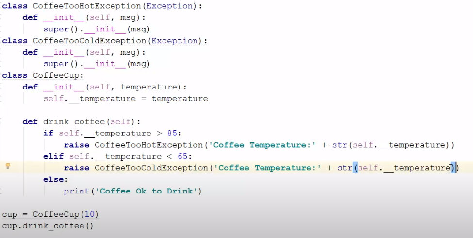 super().__init__(msg)// now we can raise ‘CustomException’ anywhere we like